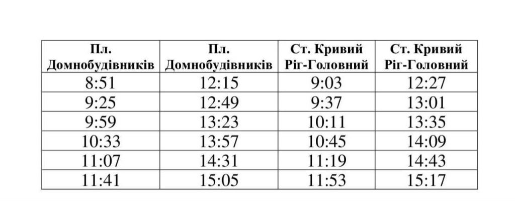 * на ділянці площа Домнобудівників – Станція Кривий Ріг-Головний перевезення пасажирів буде здійснюватися трамвайними вагонами маршруту №0 «Площа Домнобудівників – Станція Кривий Ріг-Головний» (розклад руху додається).