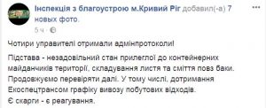 Инспекция по благоустройсву г.Кривого Рога на своей странице в Фейсбук разместила пост о вручении админпротоколов четырем управителям.