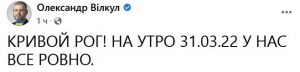 Совместный брифинг Начальника военной администрации Кривого Рога Александра Вилкула и Главы Днепропетровского облсовета Николая Лукашука на вечер 30.03.22:
