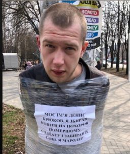 В Кривом Роге поймали и примотали скотчем к столбу очередного мародера.
