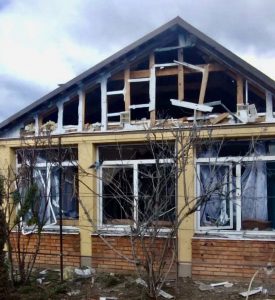 Але городяни не опускають рук і вже почали ліквідовувати наслідки обстрілу – закривають ОСБ та плівкою пошкоджені ділянки.