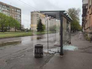 Ранок для мешканців мікрорайону розпочався не тільки із похмурої погоди, а й з неприємних сюрпризів. Вночі невідомі розбили скляний павільйон зупинки «вул. Алмазна».
