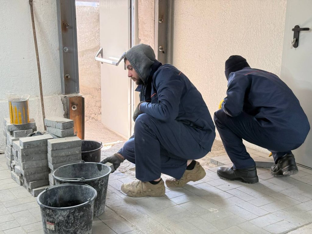 В укритті вже виконано основні роботи: облаштовано вентиляцію, електромережі, санвузли, систему водопостачання та каналізації, укріплено стіни й підлогу. Також триває облаштування аварійного виходу, гідроізоляція та монтаж металевих конструкцій із системою «Антипаніка».