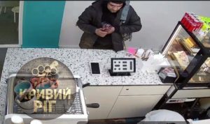 Чоловік сховав під куртку банку з грошима. Продавчиня в цей час нахилилась та відвернулась від прилавку.