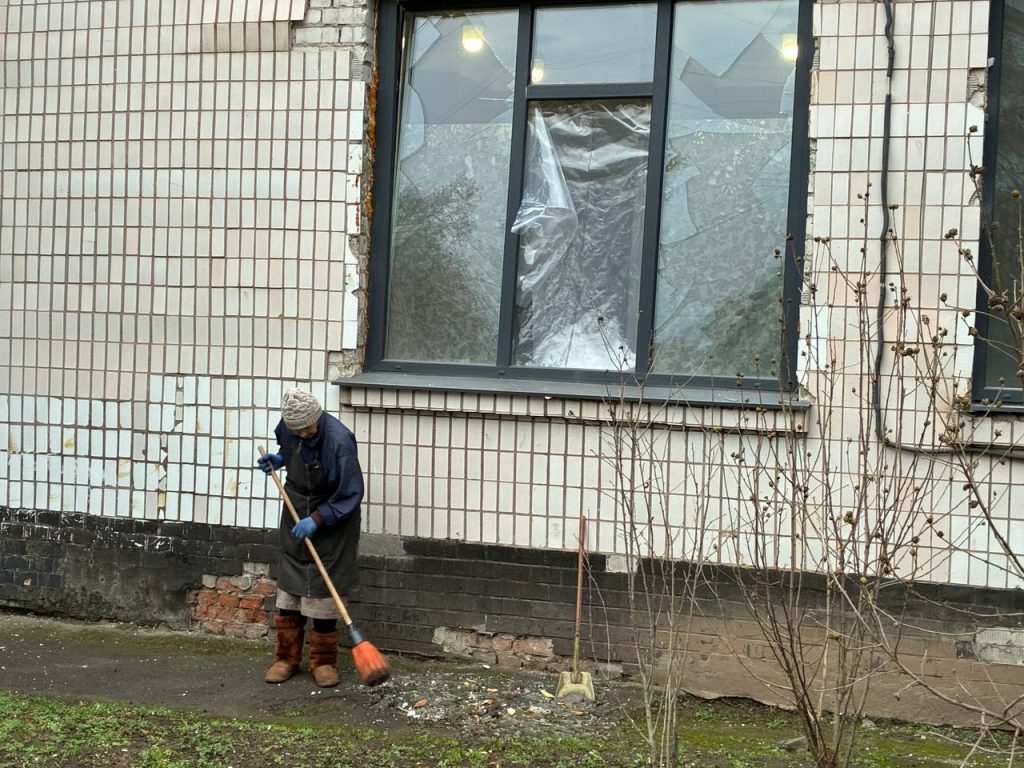 Не менше горя винесли й мешканці навколишніх будинків, чиї оселі понівечені вибухом балістичної ракети. Люди збирають по друзках те, що залишилося від їхніх вікон та разом із комунальниками намагаються ліквідувати наслідки «руського міру».