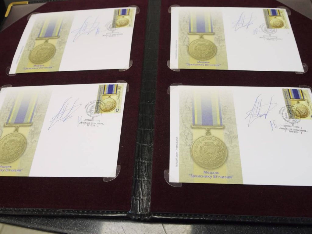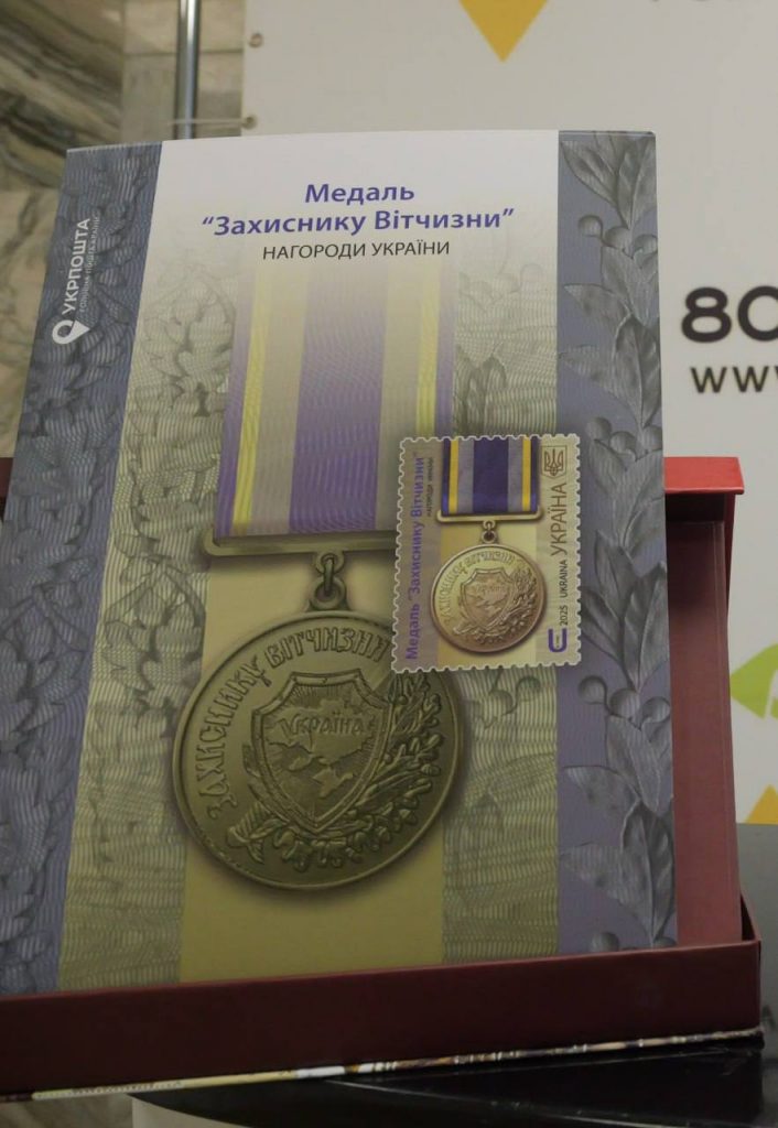Поштова марка «Медаль «Захиснику Вітчизни» продовжує серію «Нагороди України», започатковану Укрпоштою у 1997 році. Поштовий набір включає: аркуш «Медаль «Захиснику Вітчизни» та конверт «Перший день». Тираж марки складає 15 000 примірників.