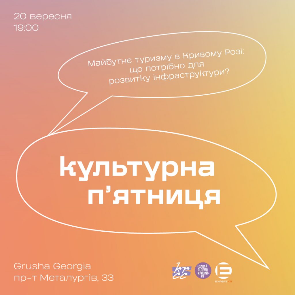 Криворізький Центр Сучасної Культури / KRCC запрошує взяти участь у відкритій дискусії: «Культурна пʼятниця. Майбутнє туризму в Кривому Розі: що потрібно для розвитку інфраструктури?»