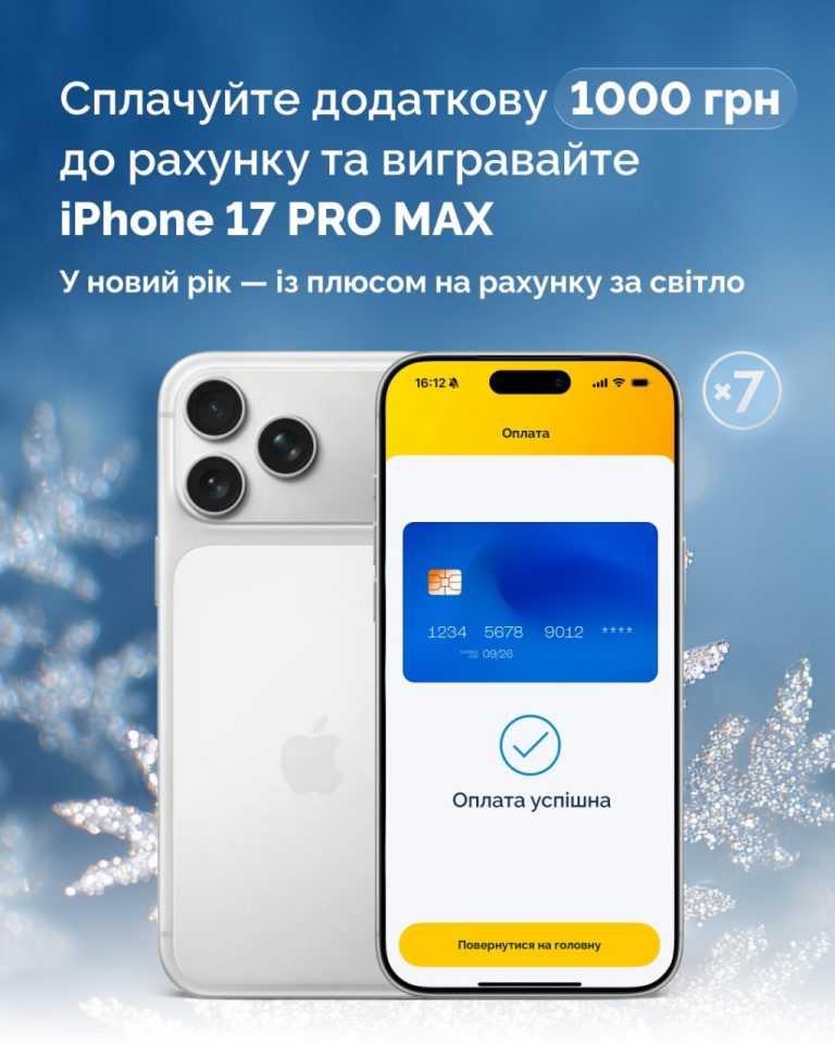 Почати 2026 рік без боргу за спожиту електроенергію можливо, сплативши до кінця грудня у повному розмірі рахунок від YASNO за листопад. А якщо до суми рахунка додати ще 1 тис. гривень, то можна отримати новенький iPhone 17.