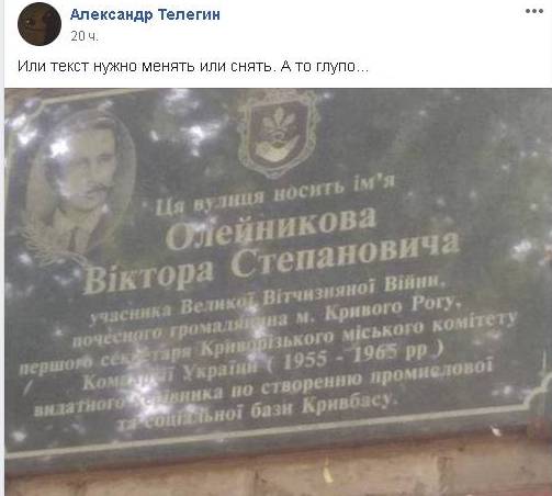 Напомним, в рамках процесса декоммунизации в Украине и ликвидации идеологического наследия советской эпохи, многие топонимы Кривого Рога были изменены. В том числе была переименована улица Олейникова, которая находится в районе Соцгорода.