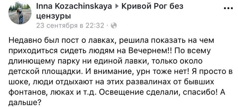 Проводя свое свободное время в парке на Вечернем, горожанам негде присесть. Мало того, также нет места, куда можно выбросить мусор.