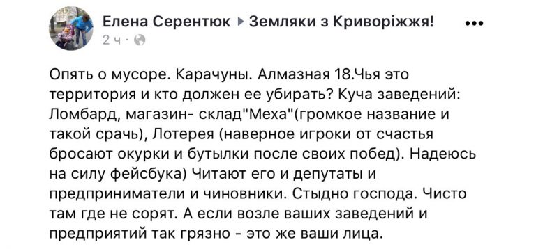 С приходом весны все чаще наблюдается тенденция возмущения горожан по поводу грязных участков на улицах Кривого Рога.