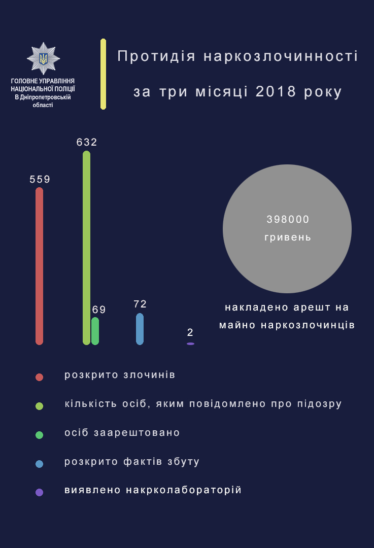 Самый высокий показатель по количеству арестованных за наркопреступления – в подразделениях ГУНП в Днепропетровской области.