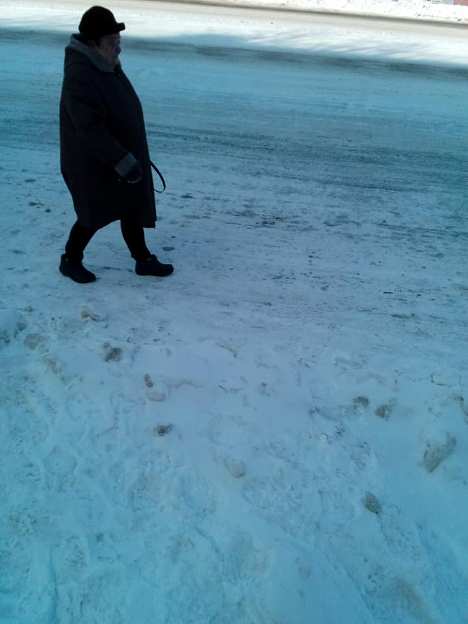 Нерасчищенный от глыб льда и замерзшего снега участок на остановке общественного транспорта «Ясень» может стать причиной травм горожан.