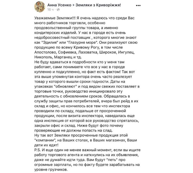 Известный в городе поставщик кондитерских изделий (в частности, конфет) «Эдилия» или «Глазурное море» недобросовестно относится к своей работе.