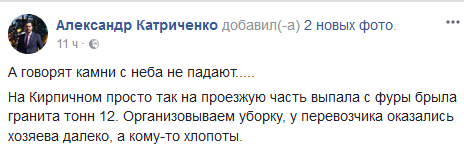 "А, говорят, камни с неба не падают" – так иронично о создавшейся ситуации на дороге отозвался заместитель мэра Кривого Рога Александр Катриченко.