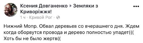 В связи с ухудшением погодных условий, из-за сильного снегопада и ветреной погоды, деревья в Кривом Роге начали падать прямо на провода у проезжей части.