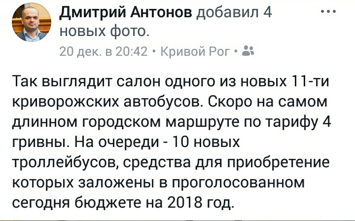 Напомним, 20 декабря в нашем городе показали первый новый автобус. Машину белорусского производства припарковали возле горисполкома. Всего ожидается поставка 11 единиц транспорта. Остальные 10 автобусов пересекли границу, проходят таможенную процедуру и получают временные номерные знаки.