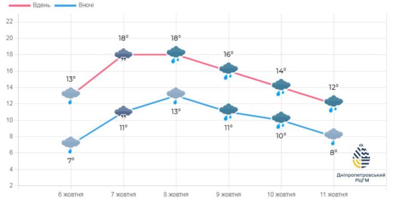 7 жовтня суттєвих опадів не очікується. Температура вдень ще залишаться в межах 17..22°.