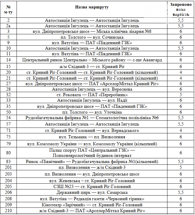 Отдел прессы и информации аппарата Криворожского горсовета и исполкома опубликовал уточненный вариант стоимости проезда в марштрутных такси.