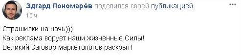 Неоднозначный пост разместил в соцсети пользователь Эдгард Пономарёв.