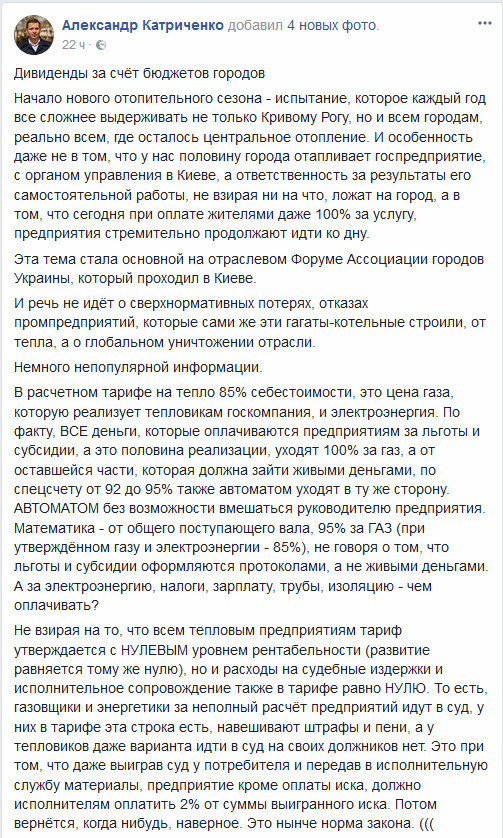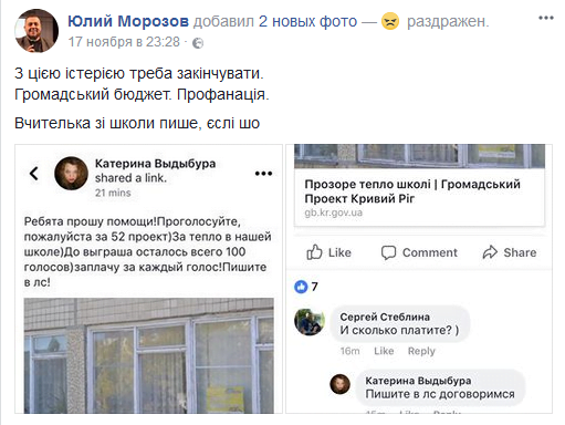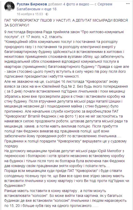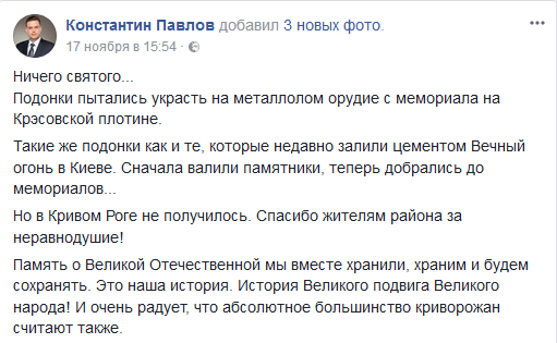 Пост об этом разместил в соцсети Фейсбук криворожанин Виктор Синенький (стиль автора сохранен).
