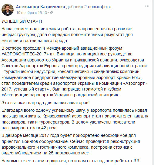 За последние 2 года криворосжкое летовище увеличило функциональные показатели в 42 раза – увеличился пассажиропоток.