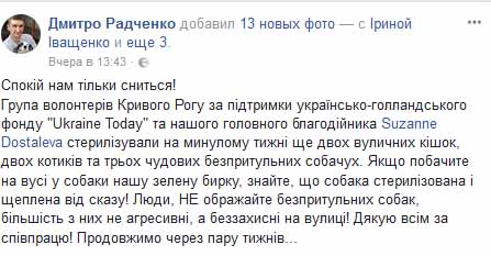 В Кривом Роге группа волонтеров в рамках проекта сотрудничества с украино-голландским благотворительным фондом «Ukraine Today» и европейским волонтером Сюзанной Досталевой, стерилизуют бездомных животных.