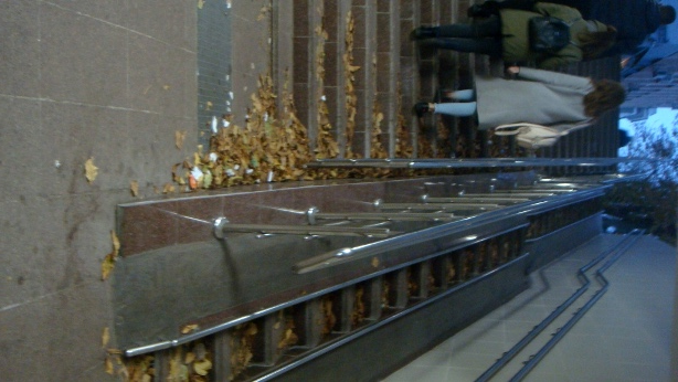 К мусору добавились охапки листвы. Такой осенний антураж в одном из очень популярных в Кривом Роге подземных переходов.