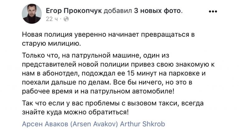 На ситуацию, в которой коп использовал служебное авто не по назначению в рабочее время, обратил внимание генеральный директор ГПП «Кривбасспромводоснабжение» Егор Прокопчук.