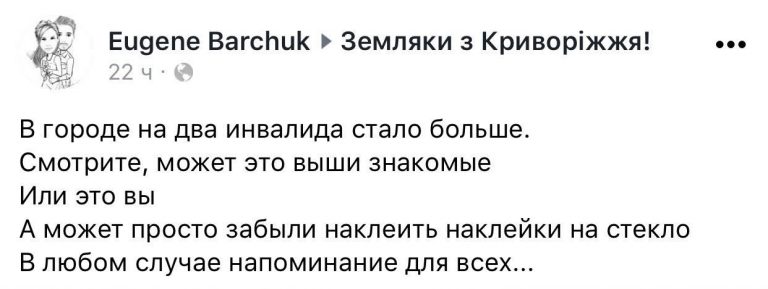 Пользователь соцсети Eugene Barchuk возмущен тем, что места парковки для людей с инвалидностью возле большого супермаркета используются не по назначению.