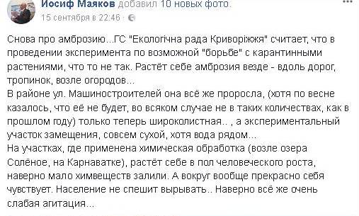По инициативе руководства города в Кривом Роге выделили специальные площадки, на которых применили разные способы борьбы с амброзией.