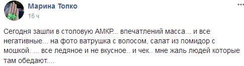 Пользователь соцсети Марина Топко разместила крайне негативный пост об организации питания в столовой промышленного предприятия "АрселорМиттал Кривой Рог".