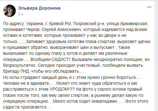 Криворожанка: У нас во дворе живет садист, который “оперирует” здоровых котят (текст 18+, фото)