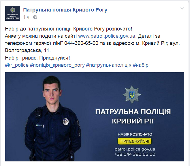 Набір до патрульної поліції Кривого Рогу розпочато.