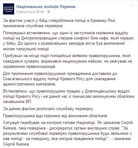 Инцидент с участием полицейского «в погонах» случился ночью 5 августа возле ночного клуба «Святошин».