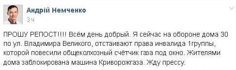 О ситуации, которая сложилась с установкой общедомового счетчика на газ. на своей странице в Фейсбуке сообщает депутат Криворожского горсовета Андрей Немченко (Сила людей).