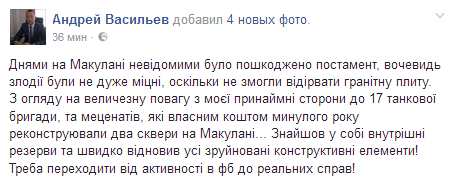 На своей странице в Фейсбуке директор коммунального предприятия «Ритуал Сервис Плюс» Андрей Васильев написал пост о том, как он перешел от активности в соцсети к реальным делам.