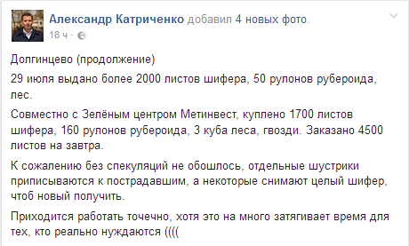 Как известно, 28 июля в Кривом Роге случилось стихийное бедствие – в результате дождя с градом и сильного ветра пострадали домовладения горожан. На более 20 улицах Долгинцевского района более 200 жилищ