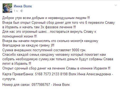 Как известно, раненый от выстрела волонтера-инструктора на учениях в Кривом Роге оператор Вячеслав Волк в тяжелом состоянии находится в больнице им. Мечникова. У него поврежден позвоночник, задет спинной